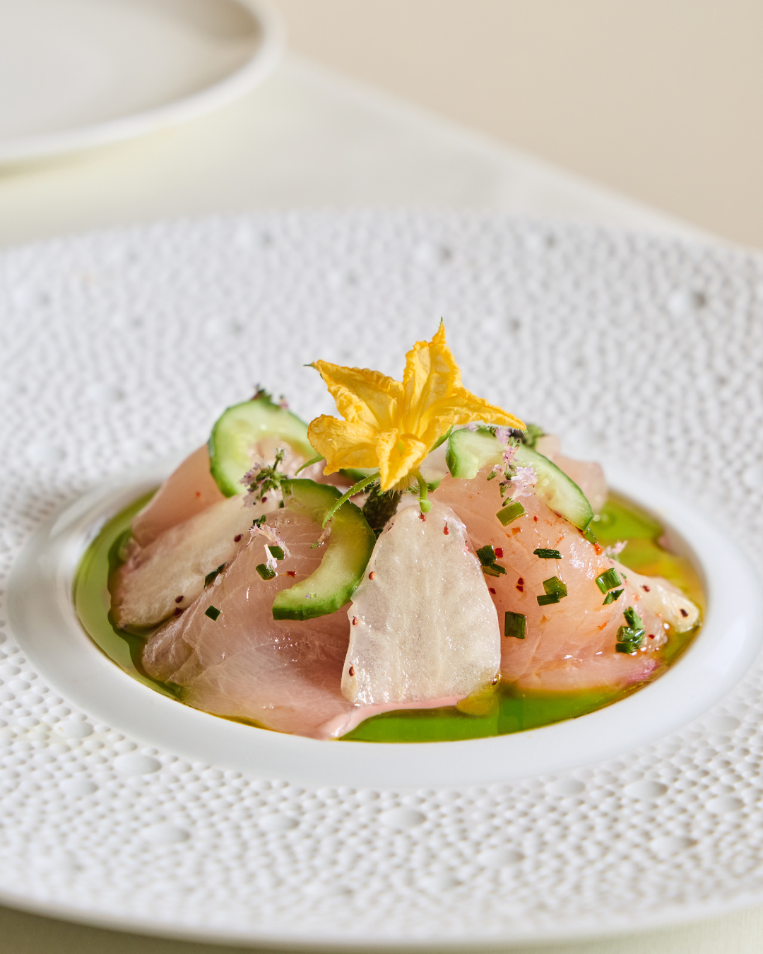 Hamachi Crudo cucumber, cilantro, strawberry, mint*